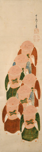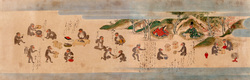 本展では、文学の世界だけでなく美術の世界でも、時代を超えて人々の心を捉えてきた「かわいさ」に注目します。とりわけ、無邪気な仕草や表情が微笑ましい子ども、身近な存在として馴染み深い犬や猫をはじめとする動物、鳥、虫などの生きものを対象とした作品には、「かわいい!」と思わず声を上げたくなるような表現が多く見出せます。室町時代の《藤袋草子絵巻》■(サントリー美術館)では、子ども向けの絵本を思わせる素朴な描写によって猿を擬人化して描き、江戸時代の伊藤若冲は、枡目描きの技法で愛嬌たっぷりの動物尽くしの屏風《樹花鳥獣図屏風》○(静岡県立美術館)を制作しました。また、近代日本画においては、温かいまなざしで小さな命を見つめた竹内栖鳳《みゝづく》、折紙で遊ぶあどけない少女の姿を描いた上村松園《折鶴》(いずれも山種美術館)など、自然、あるいは日常に見られる生きものや子どもの愛らしい瞬間を捉えようとする意識が窺えます。さらに、熊谷守一の洋画や谷内六郎の挿絵原画に表されたほのぼのとした「ゆるさ」もまた、現代人にとっての「Kawaii」という感覚に通じるものでしょう。本展では、中世から現代までの絵画ほか、乙女心をつかむ小さな化粧道具などの作品を幅広くご紹介いたします。外見のかわいさだけでなく、シンプルな線、カラフルな色彩、ユーモラスな表現に潜む「Kawaii」を、日本美術を通して紐解く展覧会です。