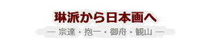 「琳派」は、17世紀の俵屋宗達(たわらやそうたつ)、本阿弥光悦(ほんあみこうえつ)にはじまり、やがて尾形光琳(おがたこうりん)や乾山(けんざん)へ、そして、江戸後期には酒井抱一(さかいほういつ)、鈴木其一(すずききいつ)らが先達の技法を倣う「私淑」という形で受け継がれてきました。20世紀に入って、宗達の再発見と研究の深化により、さらに高く評価されるようになりました。明治、大正、昭和の何度かのブームを経た後、1970年代以降に光琳の「琳」を冠した「琳派」という名称が一般的に定着しました。