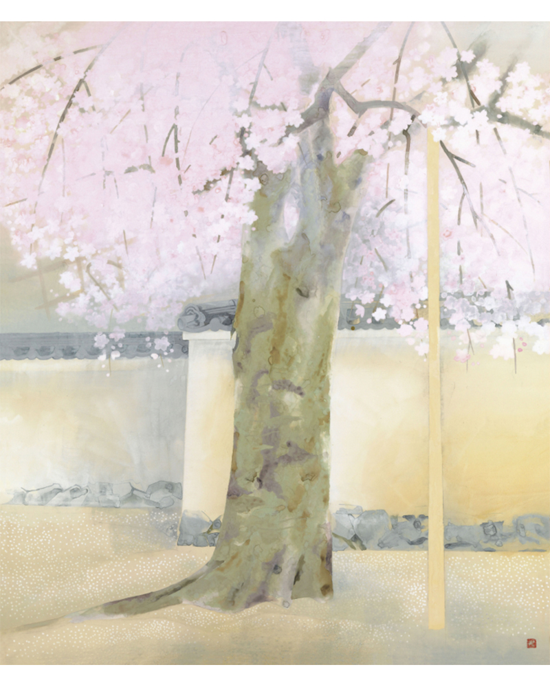 原木の「太閤しだれ桜」は樹齢約170年といわれ、山種美術館と縁の深い日本画家・奥村土牛が代表作《醍醐》に描いたことから「土牛の桜」ともよばれています。土牛は当館と縁の深い画家であり、83歳の時に制作した《醍醐》は、当館のコレクションを象徴する名作のひとつです。11月13日から始まります「奥村土牛」展では、展示室で《醍醐》をご鑑賞いただきながら、植樹された桜がこの絵のように咲き誇る姿をご想像いただければ幸いです。