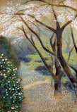 本展では、平安以降詠まれてきた和歌や俳句、あるいは「歴史画を描いて居る思いがした」(奥村土牛)、「桜は匂うかのように浮ぶ」(東山魁夷)、「古代裂を見る様な微妙な色の階調」(奥田元宋)など画家たちが桜を表現した言葉を添えながら、桜の名作をご紹介いたします。なかでも、冨田溪仙の屏風《嵐山の春》(当館蔵)は修復を終え、15年ぶりの公開となります。
