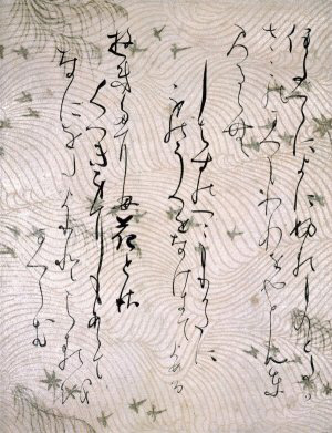 20世紀初頭より、江戸時代の琳派の作品は、近代の日本画家たちによって繰り返し研究され、取り入れられてきました。一方で琳派の絵師たちも、やはり遡(さかのぼ)る時代の古典に源泉を求め、様式を確立した一面があります。例えば主題においては『伊勢物語』や、『源氏物語』を絵画化し、また造形面では、記された和歌を視覚的に飾るため、平安時代に発達した金銀の料紙装飾を、様々な形で応用しました。そこで培われた感性やデザイン感覚は、琳派の華麗な装飾、斬新な意匠を形成した一因といえるでしょう。