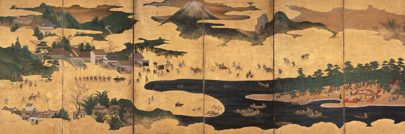 富士山を題材にした絵画は、平安時代に歌枕として詠まれた諸国の名所を描く名所絵の成立とともにはじまったと言われています。その後、『伊勢物語』などの物語文学の発達とともに物語の舞台として描かれるようになります。また、富士信仰の成立にともない、室町時代以降には「富士参詣曼荼羅図」のように、信仰の対象として描かれます。江戸時代には、富士山の連作錦絵《冨嶽三十六景》を葛飾北斎が手がけ、歌川広重(初代)は《東海道五拾三次》の中に富士山を効果的に描いています。明治以降の日本画にみられる富士山は、伝統的な技法や従来の崇高な霊峰としてのイメージにとらわれず、さまざまなアプローチで描かれ、横山大観《霊峰不二》や奥村土牛《山中湖富士》のように、画家の個性が反映された表現が見られるようになります。