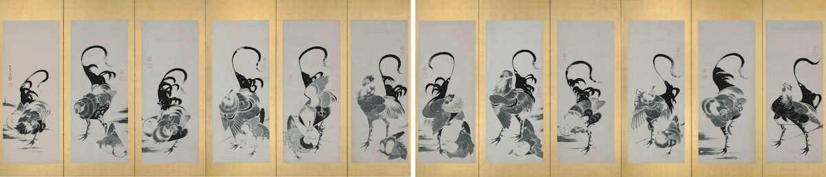 押絵貼屏風《群鶏図》*、《河豚と蛙の相撲図》*、《布袋図》*など、初公開作品を含む墨画9点を中心に、若冲の画技と表情豊かに描かれた福神や動物をご紹介。③笑う門には福来る!ユーモアあふれる作品で初笑い♪