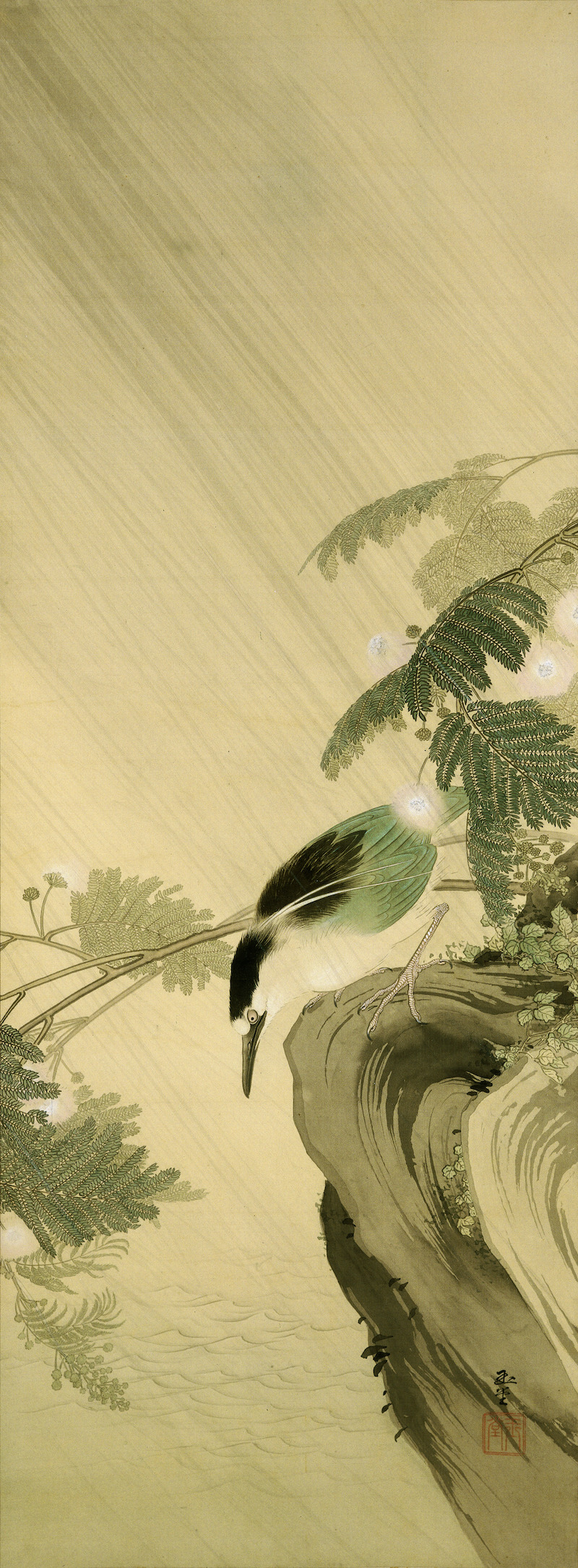 本展では、初期の《鵜飼(うかい)》(1895年、山種美術館)から、大正期の《紅白梅(こうはくばい)》(1919年、玉堂美術館)をはじめとする琳派等さまざまな研究を経て新たな境地を拓いた作品、円熟期の《彩雨(さいう)》(1940年、東京国立近代美術館)、晩年の牧歌的な作風を示す《早乙女(さおとめ)》(1945年、山種美術館)や《屋根草を刈る(やねくさをかる)》(1954年、東京都)まで、代表作を中心とする名作の数々とともに、玉堂の70年にわたる画業をご紹介します。また、少年時代から俳句を嗜み、晩年には俳歌集『多摩の草屋(たまのくさや)』を刊行するなど、句作や詠歌は玉堂の生活の一部となっていました。玉堂の詠んだ詩歌が書かれた作品をとおして、家族や親しい芸術家との交流にもスポットをあて、素顔の玉堂の魅力をお楽しみいただきます。