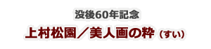 | 出品作品: | 上村松園《砧》、《新蛍》、《牡丹雪》、《春芳》《つれづれ》など18点 鏑木清方《伽羅》、池田輝方《夕立》、村上華岳《裸婦図》、 奥村土牛《舞妓》、小倉遊亀《舞う(舞妓)》《舞う(芸者)》、 伊東深水《婦人像》、《雪中美人》、橋本明治《秋意》、 石本正《のれん》ほか 浮世絵:鈴木春信《梅の枝折り》、喜多川歌麿《美人五面相 う満相》 洋画:和田英作《黄衣の少女》 ほか約50点 |