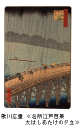鈴木春信《柿の実とり》、《梅の枝折り》、 鳥居清長《当世遊里美人合 橘妓と若衆》、《社頭の見合》、 喜多川歌麿《青楼七小町 鶴屋内 篠原》、 葛飾北斎《冨嶽三十六景 凱風快晴》、 東洲斎写楽《二代目嵐龍蔵の金貸石部金吉》、 《三代目坂田半五郎の藤川水右衛門》、 歌川豊国《役者舞台之姿絵 高らいや 三代目市川高麗蔵の千崎弥五郎》、 《役者舞台之姿絵 やまとや 初代坂東蓑助の早野勘平》、 歌川広重(初代)《東海道五拾三次》(全55枚揃)、 《名所江戸百景 大はしあたけの夕立》、《阿波鳴門之風景(雪月花のうち 花) 》 ほか 参考出品:近代絵画 菱田春草《桜下美人図》、上村松園《春のよそをひ》、