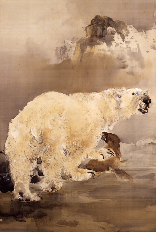 From the Meiji period on, nihonga artists have been acutely aware of Western art, which flowed into Japan, and have been exploring approaches to nihonga suited to the new age in which they lived. Participants in the Kyoto art world both carried on the traditions of sketching from life based on both Yamato-e, which originated in the Heian period, and the Edo-period Maruyama Shijô School and sought to create innovations in nihonga that would suit the times in which they lived. Their efforts were organizational as well as personal; they founded, for example, the Kyoto Prefectural Art School, Japan’s first public school of art. In that context, a great number of highly individualistic nihonga artists who became art circle leaders emerged. While respecting tradition, the highly flexible Kyoto setting introduced a series of new elements and contributed many new aspects to nihonga.