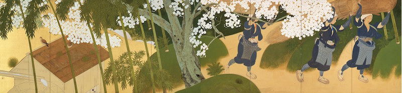 ![]() Tsuchida Bakusen, Oharame, Women Peddlers, Color on Gold-Leafed Silk Gauze, 1915, Yamatane Museum of Art |