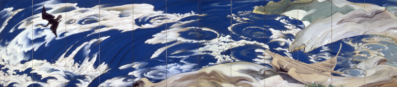 This exhibition presents all the works from the Shōchikubai exhibitions in our collection as well many other masterworks by Taikan, Shunsō, Gyokudō, and Ryūshi, all also from our collection. They include Taikan’s Sakuemon's House, a fusion of nanga and yamato-e, Shunsō’s masterpiece Return from a Fishing Trip, in which he daringly depicting light and air in the mōrōtai ("vague" or "indistinct") style, Young Ladies Planting Rice, a lively agrarian scene by Gyokudō, and Ryūshi’s Maelstroms at Naruto, a monumental painting he showed at the first exhibition by the Seiryūsha. We hope you will enjoy the rivalry of Taikan, Shunsō, Gyokudō, and Ryūshi, pioneers in modern nihonga and leaders of painting circles in Japan.