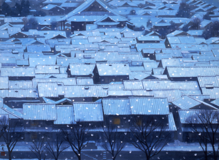 Among those works is Rising Tide, commissioned by Yamazaki Taneji, the Yamatane Museum’s first director, after seeing the murals painted by Kaii to decorate the New Imperial Palace and wanting something similar to be accessible to the public. This work, which fuses Japanese images of the sea with the decorative quality of Japanese painting, is the perfect symbol of Kaii’s return to a Japanese aesthetic. His End of the Year and other paintings in the Landscapes of Kyoto series, produced during the same period, were inspired by the words of the author Kawabata Yasunari and are splendid depictions of the ancient capital’s landscapes and the subtle changes of its seasons.