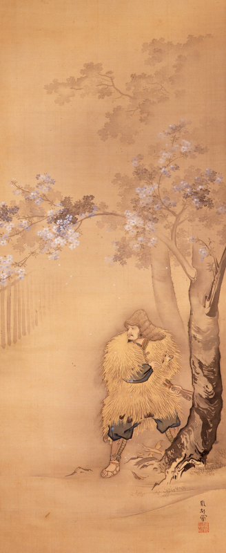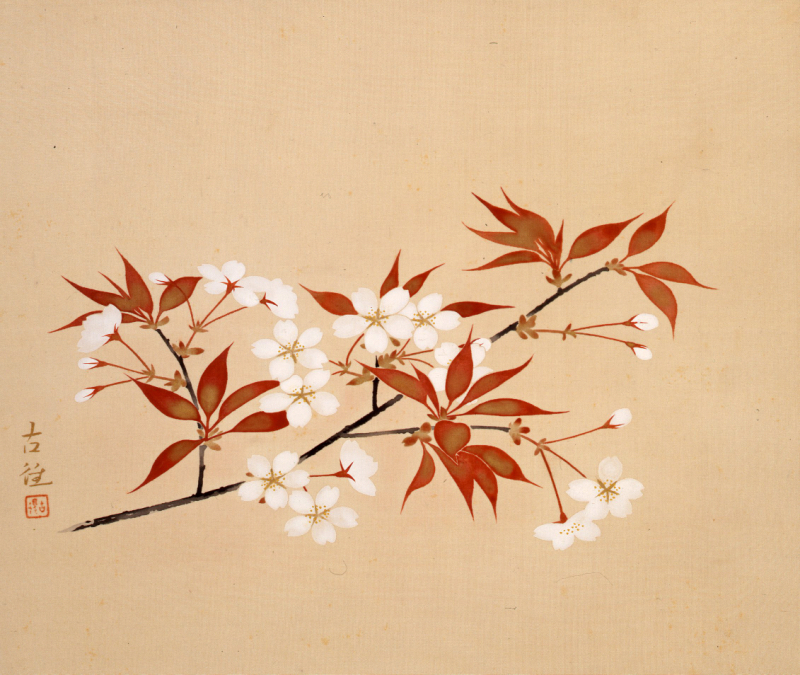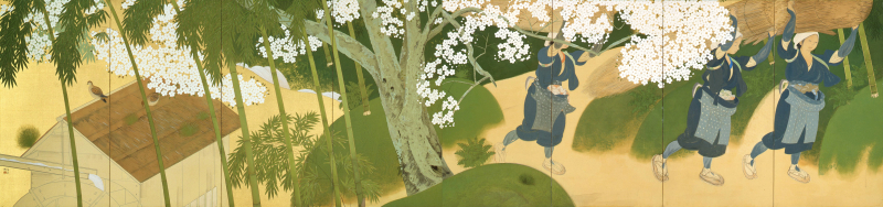 Cherry trees have long grown wild in Japan, on its mountains and lowlands. In the middle ages and the early modern period, aristocrats, samurai, and others in the upper reaches of society admired the cherry trees growing by their homes or in famous places. In the Edo period, a great number of new varieties of cherry trees were bred, cherry-blossom viewing became a custom widely observed by the common people, and the Japanese attachment to the cherry blossom grew broader and deeper. The cherry blossom, so beautiful in full bloom and so evanescent, its petals swiftly scattering, has long been celebrated in poetry, incorporated in designs for furnishings and other objects, and depicted in paintings. It has blossomed in the arts in a profusion of ways.