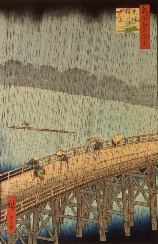 ![]() Utagawa Hiroshige I, A Hundred Famous Views of Edo: Evening Shower at Ōhashi Bridge ◆: 8/3-8/29 |