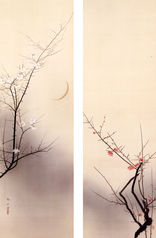 Hayami Gyoshū, Red Plum Blossoms and White Plum Blossoms. 1929; Yamatane Museum of Art