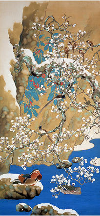 荒木十畝《四季花鳥の内 冬(山澗雪霽)》